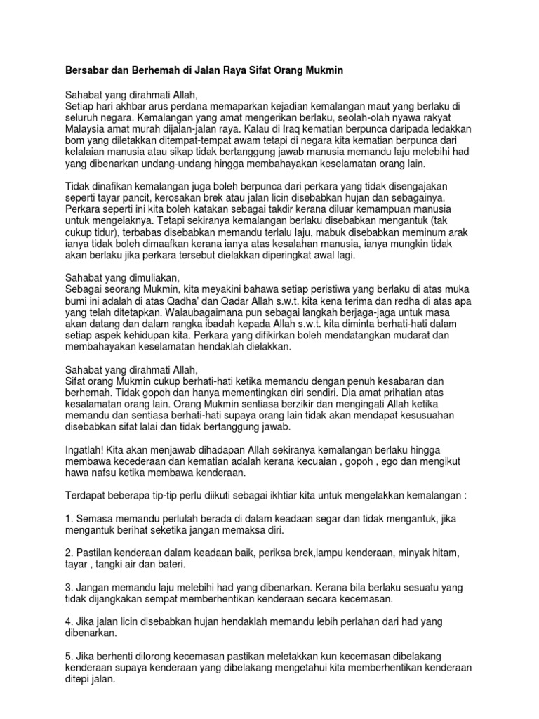 Matanya memandang tepat di depan, ligat hakikatnya, seseorang yang telah lama bergelar pemandu di jalan raya tidak memerlukan tips atau cara menjadi pemandu yang berhemah. Jika semua pemandu di jalan raya berhemah, sudah pasti risiko kemalangan jalan raya dapat dikurangkan. Contohnya para pemandu hendaklah sentiasa berwaspada dan perlahankan kenderaannya ketika melalui kawasan sekolah terutamanya pada waktu sibuk. Savesave berhemah di jalan raya for later. Kemalangan di jalan raya kerap berlaku di negara ini terutama dalam keadaan jalan raya sesak dengan kenderaan.