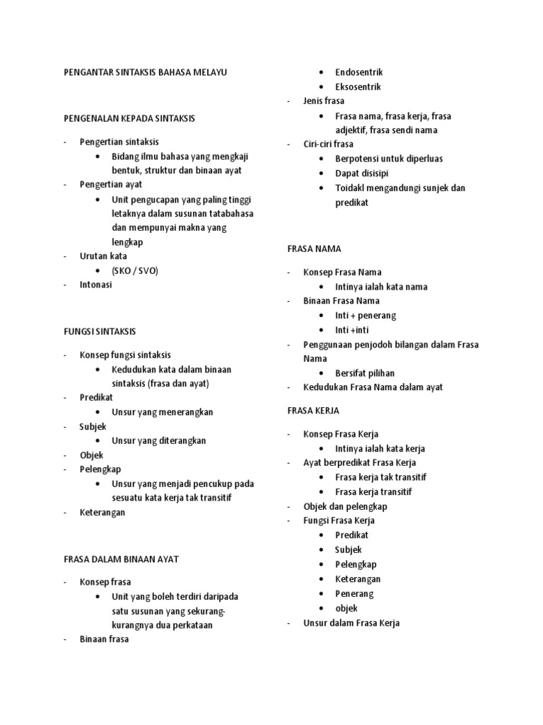 Frasa nama, frasa adjektif, frasa keterangan, frasa preposisi, frasa kerja dan kata kerja tak terhingga adalah beberapa kategori ini. Frasa adjektif dibagi 2 kategori : Frasa ini dapat berfungsi sebagai. Kata sendi nama 'di' dan imbuhan awalan 'di'. Susunan frasa adjektif dalam ayat.