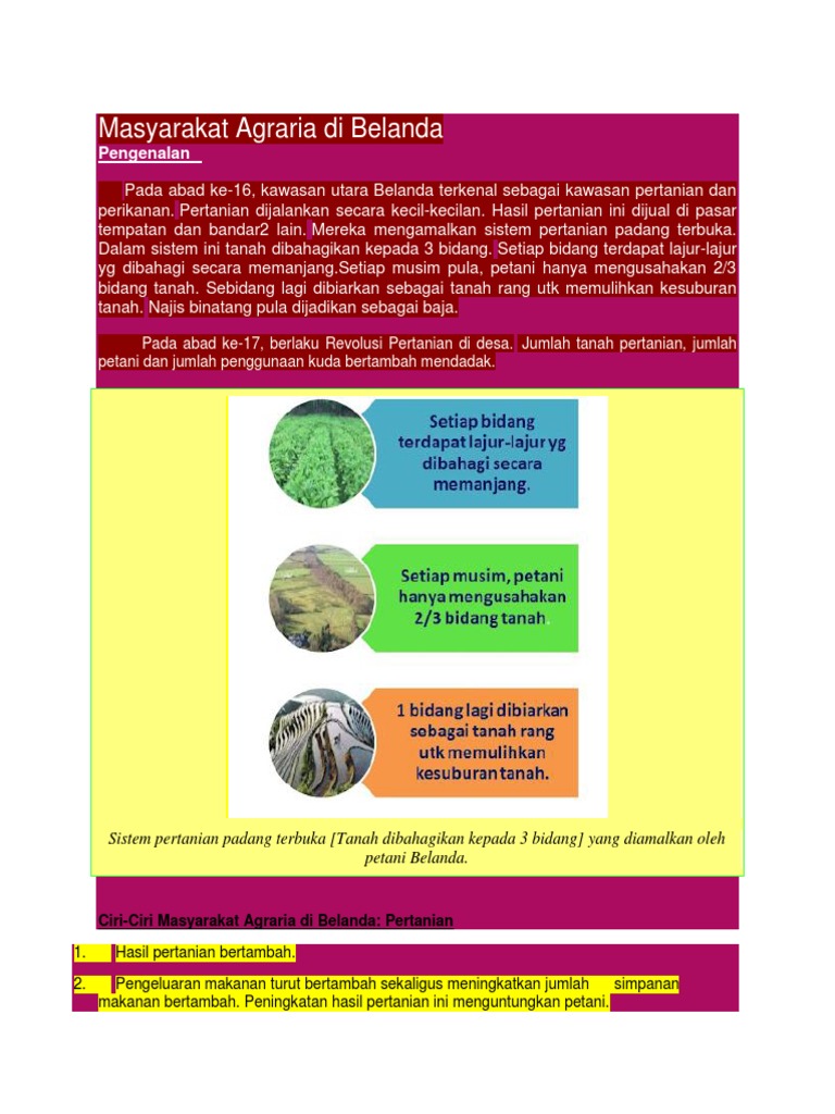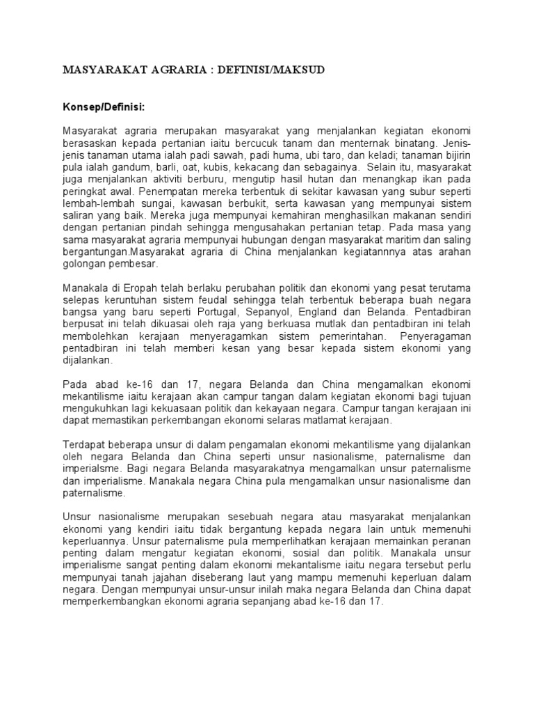 •pengeluaran kekal sehinggalah berlaku revolusi ekonomi pd tahun 1568. Indonesia filosofi, asas, ajaran, teori hukum pertanahan, dan agraria. Konflik agraria petani di wilayah hutan jawa, misalnya, adalah warisan konsep perhutanan ilmiah ala jerman yang dipakai kolonial belanda dan diteruskan hingga kini. •masyarakat agraria mengutamakan kaedah tanaman bergilir2. Masyarakat agraria di negara belanda dan china boleh dihuraikan dalam beberapa aspek utama seperti kegiatan ekonomi yang dijalankan, kawasan penempatan mereka, sistem pengairan, kesuburan tanah petanian, dan penggunaan teknologi dalam bidang pertanian.